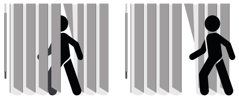 A diferencia de las cortinas de tela convencionales, Vertical Magic cuenta con lienzos independientes de 41 cm de ancho, separados 10 cm entre sí en el riel superior.