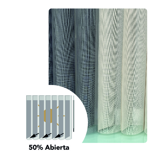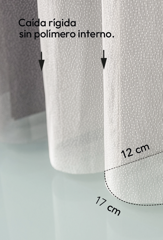 Destaca por su exclusiva tela de alta calidad, confeccionada con un tejido de punto y secciones de malla que le otorgan un carácter único, muy diferente a las cortinas tradicionales.